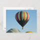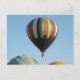 Ein farbenfroher, heißer Ballon, der gerade abgehoben wurde, sowie einige noch aufblasbare.