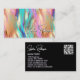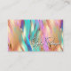 Eine Visitenkarte mit einem hübschen, farbenfrohen holografischen Design in Goldtönen, Rosa, lila und Blau.