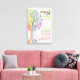 Dieser schöne mehrfarbige Judaika hebräische Segen Botanische Leinwand-Druck heißt "Eyaln, Eylan". Es ist ein einzigartiger Weg, um jemandem, der wirklich etwas Besonderes ist, seine Bewunderung und seinen Segen auszudrücken. Die Übersetzung des Hebräischen lautet: "Baum, o Baum, mit was soll ich dich segnen? Dass deine Frucht süß sein sollte; deine Frucht ist schon süß. Dass dein Schatten angenehm sein sollte; dein Schatten ist schon angenehm. Vielleicht ist es G-d's Will, dass alle Sprossen, die sie von Ihnen Pflanzen haben, genau so sein sollten wie Sie."