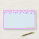 Mehrfarbige Konfetti auf hellblauem Hintergrund mit violettem Rahmen Post-It Notes. Der Text "Gute Dinge kommen" kann personalisiert sein.