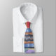 Vielfarbiges Farbmuster, das aus dem ursprünglichen Foto eines Künstlers aus einer Gruppe von T - Shirt in Krawatte erstellt wurde. Horizontale Streifen aus Holzkohle, blau, braun, rot, orange und mehr werden sich mit fast allem in Ihrem Kleiderschrank abstimmen. Tragen Sie diese einzigartige, kunstvolle Krawatte, um Ihre Individualität zum Ausdruck zu bringen.