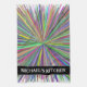Dieses GeschirrtuchAusrüstungsbeschreibungen ein Muster mit Linien färbten die verschiedenen Farben, die scheinen, von einem zentralen Punkt heraus zu bersten. Er kennzeichnet auch einen individuellen Namen.