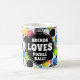 Eine lustige Kaffeetasse mit modernem Design mit bunten Pickleballs auf weißem Hintergrund. Ein modernes Design, das perfekt für diejenigen ist, die Liebe pickleball. Sie können die Formulierung auf alles ändern, was Sie wollen. Der Stil, die Farbe und die Platzierung des Schriftartes können auch nach Ihren Wünschen geändert werden, ebenso wie die Größe und Platzierung des schwarzen Kreises hinter dem Text.