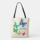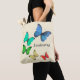 Schöne mehrfarbige Schmetterlinge auf der weißen Tote Tasche. Text kann personalisiert sein. Elegante Frauen kaufen Taschen.