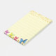 Lined Post_it-Notizen mit bunten Schmetterlingen und goldmetallischen Konfetti-Punkte auf hellgelben Hintergrund. Aufgaben, Aufgabenliste usw.