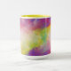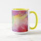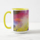 Ein farbenfroher 2-farbiger Kaffee-Tasse mit gelbem Interieur und Griff.
