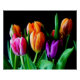 Mehrfarbige Tulip-Blume mit schwarzem Hintergrund Poster