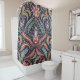Mehrfarbiger Duschvorhang aus Floral Damask mit einem wunderschönen Muster aus blau, rosa, lila und goldfarbenem Set auf schwarz.