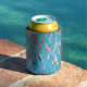 Mehrfarbiger Konfetti-Hintergrund auf blau Dosenkühler