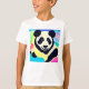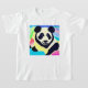 Ein lächelnder Panda auf vielfarbigem Hintergrund.