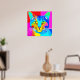 Poster im Retro, Pop Art Stil, Katzenportrait in lebhaften Primärfarben Magenta, Cyan, Blau und Gelb