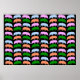 Dieses Design bietet eine Reihe von verschiedenen Cartoon-Stilschweinen. Die Hunde sind abwechselnd in rosa und blau, grün und orange gehalten. Der Hintergrund ist schwarz. Es wird hier auf der größten Poster-Größe gezeigt, ist aber auch auf mehreren kleineren Poster-Größen erhältlich.