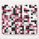 Dieses Mauspad weist ein buntes geometrisches Muster in Viva Magenta auf, schwarz, grau und weiß. Die Quadrate sind in zufälliger Reihenfolge gefärbt und Sie können die Farben im Design-Tool bearbeiten.