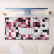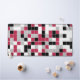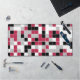 Diese Schreibtischmatte weist ein buntes geometrisches Muster in Viva Magenta auf, schwarz, grau und weiß. Die Quadrate sind in zufälliger Reihenfolge gefärbt und Sie können die Farben im Design-Tool bearbeiten.