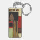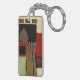 mehrfarbiges Paneelgemälde mit braunem Leaf Schlüsselanhänger