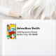 Dieses Adressetikett mit einem Muster, das an modernes Design aus der Mitte des Jahrhunderts erinnert, wurde einfach personalisiert und mit einer lebhaften Palette verschiedener Farben in auffallendem Schwarz versehen.