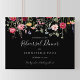 Dieses bunte Begrüßungsschild für die Probe der Wildblume eignet sich perfekt für eine moderne Hochzeitsfeier. Das Design umfasst eine bunte Auswahl an rosa, rot, lila, gelb, weiß, violett, rot, bordeauxfarbenen Blume in schwarzem Hintergrund.
