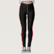 Diese Leggings weisen eine rot-schwarz-borderierte mehrsprachige Typografie-Wolke "Danke" entlang des links Beins auf. Das rechte Bein hat zwei rote Streifen.