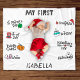 Diese niedliche und moderne Babydecke eignet sich hervorragend, um in seinem ersten wichtigen Urlaub Bilder von Ihrem Baby zu machen. Es enthält die Formulierung "My First" oben, in schwarzer Schrift plus 8 der Hauptfeiertage, jede mit einem kleinen bunten lustigen Icon (Patrick's Day mit einem vierblättrigen Kleeblatt, 4. Juli mit einem "US Flagge" Hut, Erntedank mit Kürbis, Ostern mit niedlichen Hasen, Weihnachten mit Weihnachtsmütze, Geburtstag mit einem schönen Kuchen, Valentinstag mit Pfeil und und Halloween mit einem lustigen Geist). Es kann mit dem Namen des Kindes in einem handgeschriebenen Schriftart personalisiert werden, was das ideale Geschenk für Babyduschen oder für Neugeborene und Neugeborene ist.