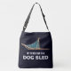 Lass ihnen, was du im Winter für Spaß machst. Ein Hund Schlitten und Text mit dem Text "MEIN ANDERES AUTO IST EIN HUND SLED" auf einem sternigen Hintergrund. Sie können Ihren eigenen zusätzlichen Text auf den Schlitten hinzufügen.