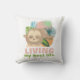 Ein niedlicher Faultier steht unter pastellfarbenem tropischem Blattwerk. Die Unterschrift unten lautet: "Mein bestes Leben langsam zu leben." Der Text ist in sanften Pastellrosa, Grün und Orange gehalten, um den tropischen Rahmen nachzuahmen.