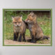 Zwei rote Fuchskits teilen sich einen Moment außerhalb ihrer Höhle.