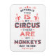 Retro Circus Style Poster in Rot und Marineblau auf Weiß mit Stars, Bannern und Design Akzenten zeigt Worte in Staat Fair Festival Stil Typografie Kunst, "Eigentlich, das ist mein Zirkus, das sind meine Affen. Genießen Sie die Show."