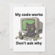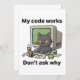 Das perfekte Motiv für alle Entwickler, Programmierer und Informatiker. Zeigt eine gruselig aussehende Katze, die vor dem Bildschirm sitzt und ein witziges Sprichwort präsentiert. Eine ideale Aussage für humorvolle und entspannte Programmierer.