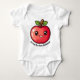 Ein charmanter Babybodyanzug in einer weichen, pastellfarbenen Farbe, entworfen, um die erste Rosh Hashanah zu feiern, beherbergt einen bezaubernden roten Apfel im kawaii-Stil in der Mitte. Der Apfel mit seiner runden, chubby Form, glänzender roter Haut und einem süßen Lächeln mit glitzernden Augen und rosigen Wangen strahlt pure Freude aus. Unter dem Bild zeigt der Bodysuit eine anpassbare Aufnahme in einem spielerischen, abgerundeten Schriftart mit dem Text "Das ist meine erste Rosh Hashanah!" - eine reizvolle und persönliche Touch, um diesem besondere Anlass zu gedenken.