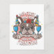 Das ist ein Karikaturenbild eines französischen Bulldoggen in einer Feierstimmung. Es scheint das erste neue Jahr mit dem Besitzer zu feiern.