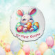 Niedliches Ostersonnigen mit bunten Ostereiern, mit Monogramm für Sie, um Ihren eigenen Text einzufügen, My First Oaster, für Mädchen.