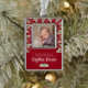 Dieses hübsche, erste Weihnachtsschmuck für das Neugeborene in Ihrer Familie besticht durch ein quadratisches Foto und ist mit heiligen Blätter versehen. Der Hintergrund ist dunkelrot. Gib diesen schönen Sake-Ornament als Weihnachtsgeschenk.