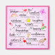 "Das ist mein Gebet für Sie: Komfort an schwierigen Tagen, Lächeln, wenn Traurigkeit eindringt, Regenbogen den Wolken folgen, Lachen, um Ihre Lippen zu küssen, Sonnenuntergänge, um Ihr Herz zu wärmen, Umarmungen, wenn Geister sich schlängeln, Schönheit für Ihre Augen zu sehen, Freundschaften, um Ihr Wesen aufzuhellen, Glaube, Vertrauen für wenn Sie Zweifel, Mut sich selbst zu kennen, Geduld, die Liebe zu akzeptieren, um dein Leben zu beenden." Mit einer rosa Hintergrundfarbe, die angepasst werden kann.
