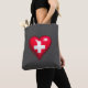 Ein Herzsymbol in den Farben der Schweiz, mit dem weißen Kreuz auf rotem Hintergrund.