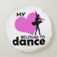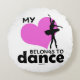 Gehört rundes Wurfskissen des Tänzers mit dem Text, "mein Herz Tanz". Es hat eine Ballerinatänzer-Silhouette.