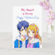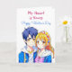 Eine liebliche Happy Valentine's Day Card, die einen Anime-Jungen und ein Mädchen in Blau und Rosa darstellt. Auf der Rückseite ist eine Farbseite, auf der Sie die Namen personalisieren können. Valentinstag-Karte für ihn oder sie.