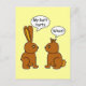 Mein Hintern tut weh! -Was ist? Zwei Schokoladensträucher mit jeweils einem Biss haben sie abgenommen. Der eine sagt, sein Hintern tut weh, der andere kann ihn nicht hören, weil seine Ohren abgekaut sind. Das sonnige Sprichwort für Kaninchenfreunde und die Osterferien.