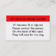 Behalt diese Karte in deiner Brieftasche, falls du krank oder verletzt wirst. Die Details auf der Rückseite sind die Person(en), die sich um Ihr Haustier kümmert.