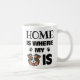 Niedliche Zuhause ist, wo mein australischer Schäferhund ist Cartoon Gesicht und Name Personalisierte benutzerdefinierte Tasse | Diese niedliche und inspirierende Tasse zeigt den Namen Ihres Hundes (seitlich) und das Zitat "Zuhause ist, wo mein [Cartoon Australischer Schäfergesicht] ist" in moderner und trendiger Typografie. Das ist ein tolles Geschenk für den Hundebesitzer, der seinen Hund Liebe. Einfach mit ihrem eigenen Namen oder dem Namen ihres Hundes anpassen.
