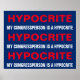 Weiß und rot auf blauem Hintergrund: Heuchler. Wir hören jeden Tag ihre Worte und sie verhalten sich, als ob wir uns nicht erinnern oder nicht im Internet nachsehen können, was sie gestern, letzte Woche, letztes Jahr oder jederzeit gesagt haben. Es ist an der Zeit, sie öffentlich für das zu rufen, was sie sind. Roter und weißer Text auf blauem Hintergrund.