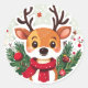 eine Weihnachtsgeschenke-Aufkleber-Abbildung eines Happy Cartoon-Hirsches mit einem roten Schal um den Hals,