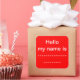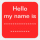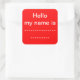 Diese quadratischen Aufkleber sind rot mit "Hallo mein Name ist___". Diese Namensmarken eignen sich hervorragend für Geschäftstreffen, Ansammlungen oder Mitarbeitermarken.