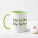 Silkie Hühner - die knuddeligen Teddybären der Geflügelwelt! Wenn Sie überhaupt ein Silkie besessen haben, das Sie können, herrlich sie sind - niedlich, freundlich und sehr, sehr fotogen. Hier haben wir eine Wasserfarbemalerei von einem weißen Silkie, das durch ein Feld des Grüns und der Bluebells wandert. Der Text - "mein Silkies - meine Welt!" ist ein Ausdruck von, wie Silkie Inhaber ihre mit Federn versehenen Freunde sehen. Wenn Sie einen Silkie Inhaber kennen oder wenn Sie einer sich sind, haben Sie gerade das perfekte Geschenk gefunden. Wollen Sie unterschiedlichen Text? Kein Problem - Sie können diese Tasse mit Ihrem sehr, personifizieren Wörter zu besitzen. Klicken Sie einfach an "besonders anfertigen es" Knopf unter dem Bild und ändern den Text zu Ihrer eigenen persönlichen Mitteilung. Geburtstage, Weihnachten, Ostern - was könnte eine mehr passende Sache sein, zum des Silkie Liebhabers in Ihrem Leben zu geben?