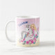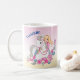 Eine niedliche Illustration eines Mädchens mit langen Haaren auf ihrem weißen Pferd, mit einer Garage aus rosa und lila Blume. Dieses Originalwerk wurde von Daniella erstellt