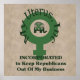 Kampf gegen den Teebagger-Krieg der Republikaner gegen Frauen. Das Symbol für Frau hat den republikanischen Elefanten in der Mitte mit einem X, umgeben von "My Uterus, Inc" und den Worten "INCORPORATED, um Republikaner aus meinem Geschäft behalten".