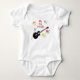 Dieses farbenfrohe Shirt hat eine Gitarre mit Sternen, die verstreut sind. Über der Gitarre steht: "Mein Vater Rocks!"