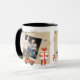Meine 1. Weihnachtsfeier als Vater Foto Winterurlaub Kaffee Tee Tasse bietet Ihr Lieblings-Foto umgeben von einem Kleinkind mit Geschenk, ein rotes Auto mit einem Baum und ein Geschenk. Ideal zu Weihnachten für einen neuen Vater. Entworfen von ©Evco Holidays www.zazzle.com/store/evcoholidays