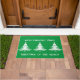 Schneebedeckte Winterbäume an einer skurrilen Tür mit Ihrer Adresse. Helfen Sie diesen Treiber, das Paket auf die richtige Veranda zu werfen. Holen Sie sich auch einen für Ihre Nachbarn! Herzlich willkommen zu Ihren Gästen mit Grüße der Saison.