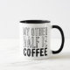 Design besteht aus moderner Typografie mit serifenigem Schriftart. Zitat: Meine andere Hälfte ist Kaffee