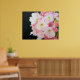 Meine Blüten Poste Delikate rosa Blüten häufen sich zusammen mit weichen Blütenblättern und lebhaften Gelbtonen, Set vor einem dunklen Hintergrund, der ihre Lebendigkeit erhöht. Die Komposition erfasst die Blume in voller Blüte, zeigt ihre faszinierenden Details und ihre natürliche Schönheit.